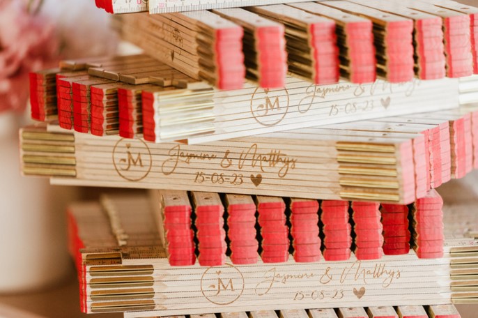 In eerste instantie hadden we vooral gedacht dat we Megan gingen nodig hebben de dag zelf om alles in goede banen te leiden en wat te sturen in onze keuzes maar uiteindelijk heeft ze in praktisch het volledige verloop een enorm belangrijke rol gespeeld. Er komt zoveel meer bij kijken en het is enorm handig om iemand dichtbij je te hebben die qua organisatie van huwelijken al wat ervaring heeft! Onze ideeën en haar ideeën werden tot een mooi geheel gegoten en tot werkelijkheid gebracht. Op die manier zagen wij onze dag meer en meer vorm krijgen en konden wij met een gerust hart ernaar toeleven. Onze locatie was pas de dag op voorhand beschikbaar waardoor we pas zeer laat konden starten met de opbouw van ons feest. Daar stond zij paraat om alle leveranciers te ontvangen en samen met ons te zorgen voor de prachtige aankleding van de zaal.